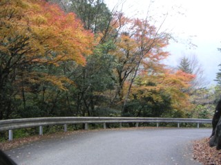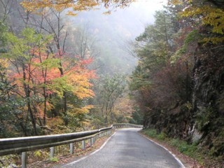 標高700m付近まで下ってくると、紅葉の中を進むようになる。 |