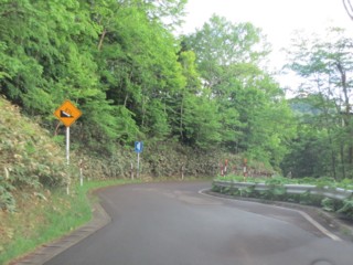 国道243号から津別峠までは標高差が600mあり、急カーブ・急勾配の道が続く。 |