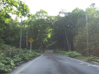 センターラインのない道が続くが、途中に待避所が設置されている。 |