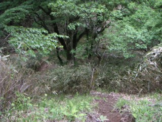 草が多い茂っていて分かりづらいが、車道からは下っていく。 |