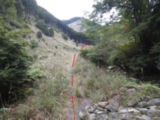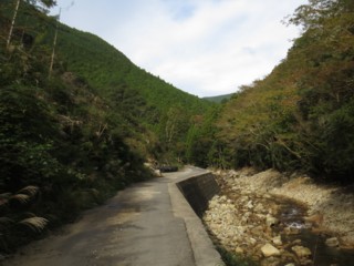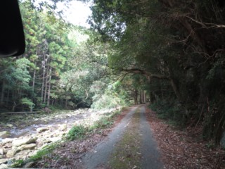 玉の川林道の分岐から国道371号の古座川町側の車両通行不能区間へ進んでみる。 |