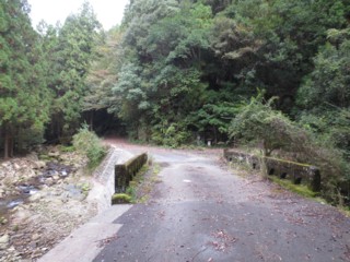 玉の川林道の分岐から玉の川林道(林道 木守平井線)方面の橋を見る。 |