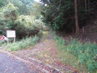 林道木守平井線の看板脇から、国道371号の車両通行不能区間へ入ってみる。 |