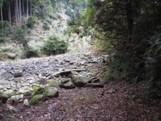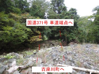 国道371号の車道まで戻る途中、再び沢を渡る。 |
