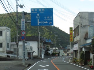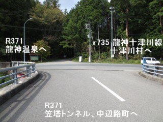 直進が国道371号だが、県道735号龍神十津川線交点まで、長い間建設中だった。 | |