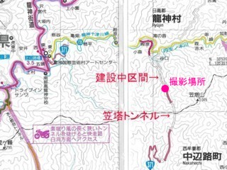 笠塔トンネル方面へ建設中の国道371号(画像右)。 | |