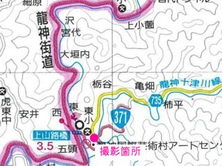国道371号を使って県道735号交点へ下っていく。 |